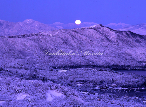 003291 芦ノ湖雪景と南アルプスへの月の入り 大観山 神奈川県