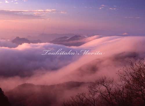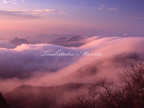 006235 朝日に染まる滝雲 旧碓氷峠 長野県