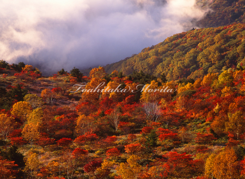 034376 紅葉の天狗の庭と雲海 吾妻山 福島県