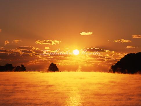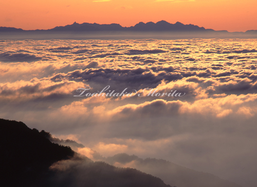 035092 加久藤盆地の雲海に浮かぶ霧島連山の黎明 宮崎県