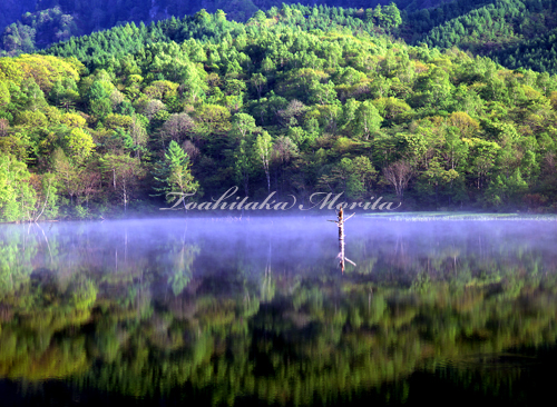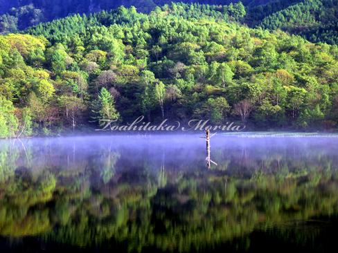 020505 朝霧晴れる萌黄の鏡池 戸隠 長野県