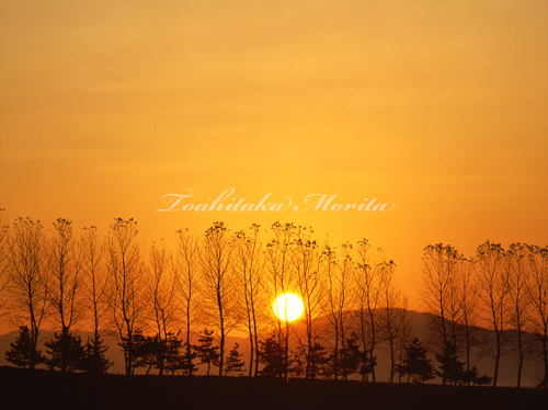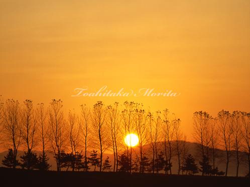 023367 ポプラ並木の朝日 蒜山高原 岡山県