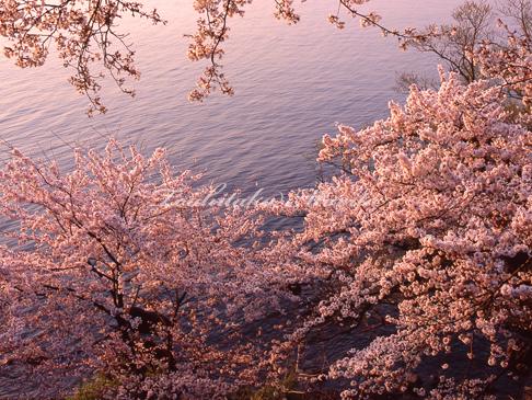 027385 朝日に染まる海津大崎の桜 琵琶湖 滋賀県